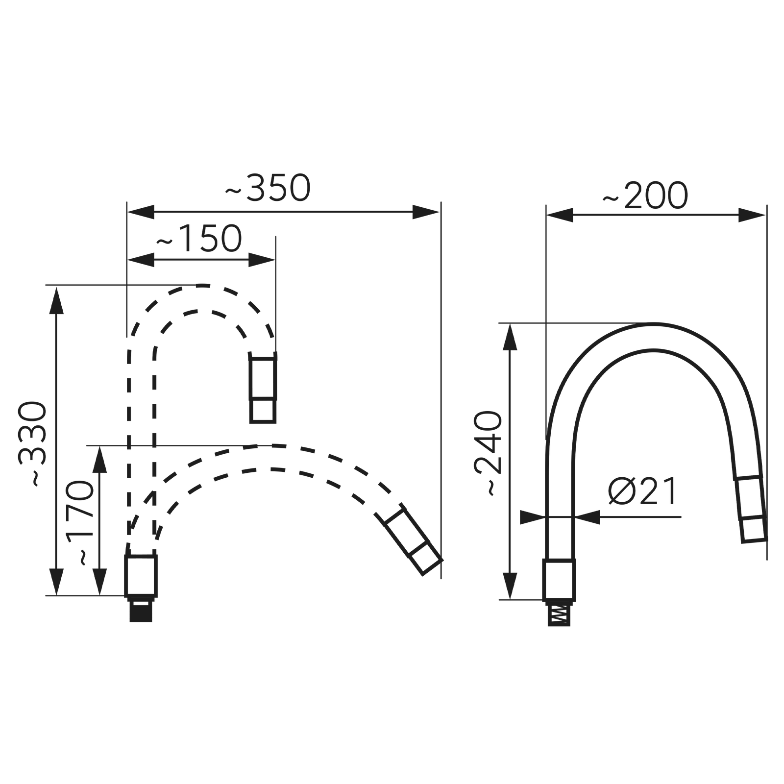 elastyczna wylewka; mocowanie za pomocą klucza imbusowego 3mm; potrójne uszczelnienie uszczlkami typu o-ring