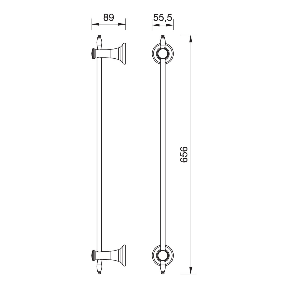 RETRO wieszak na ręcznik pojedynczy 600mm, chrom