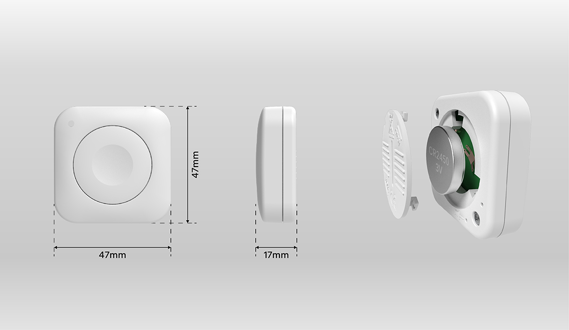 BT-01 to wielofunkcyjne urządzenie z komunikacją bezprzewodową, którego funkcje są określane z poziomu aplikacji. Jest to przycisk, po kliknięciu którego możemy wywołać zaprogramowaną wcześniej akcję, uruchomić urządzenie. Każdej sekwencji przycisku można przypisać inne działanie. Może służyć do sterowania grupami urządzeń lub scen. Wbudowany buzzer (piszczek) uruchamia się przy niepowodzeniu akcji.