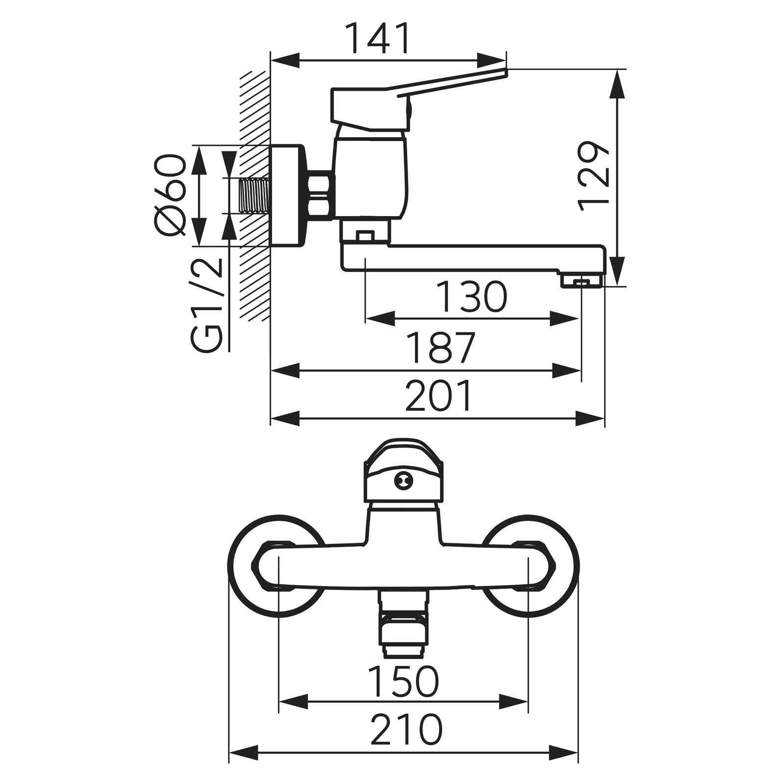 ISSO bateria umywalkowa ścienna, chrom