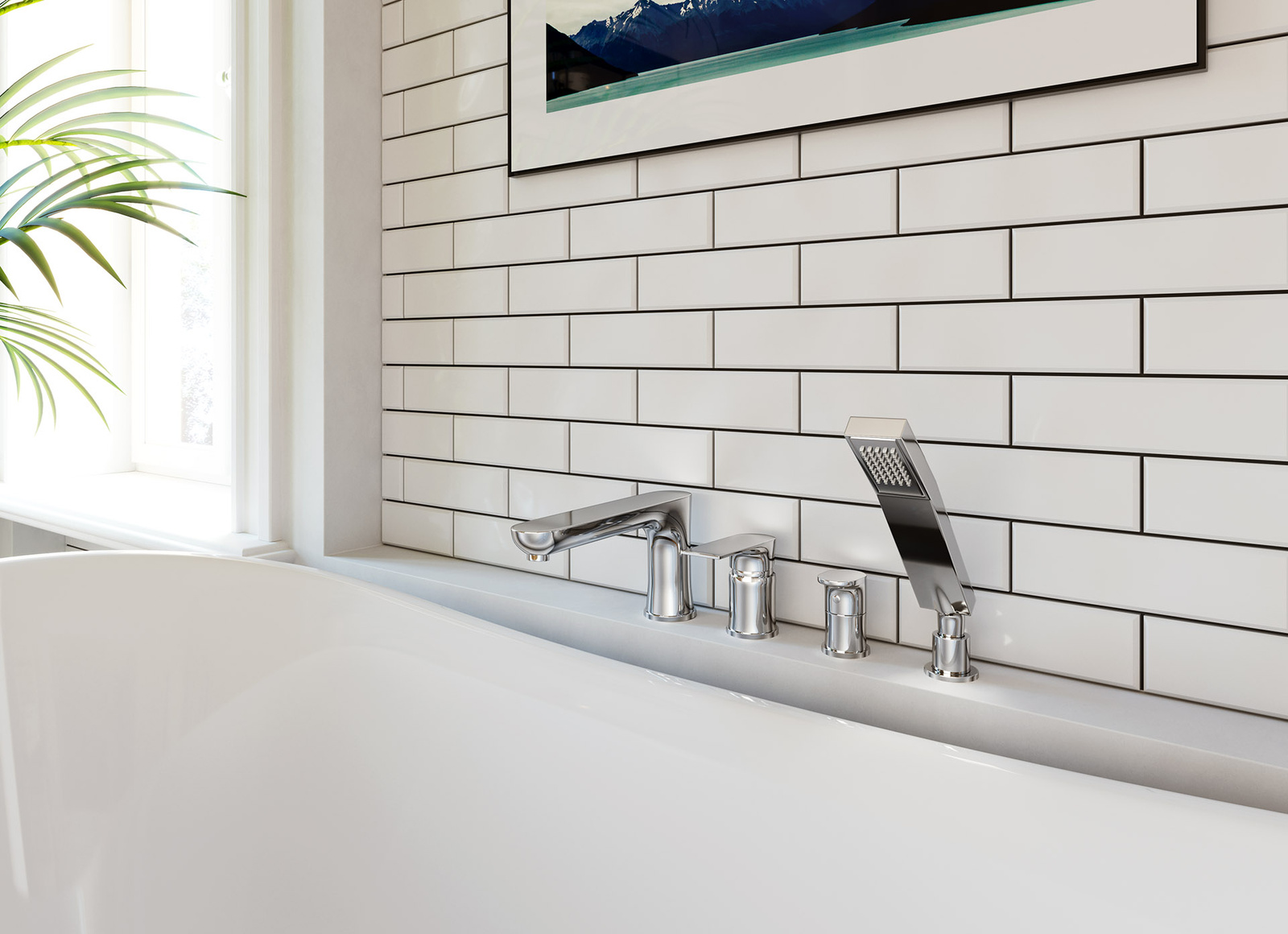 ALGEO SQUARE bateria wannowa 4-otworowa z zestawem natryskowym, chrom