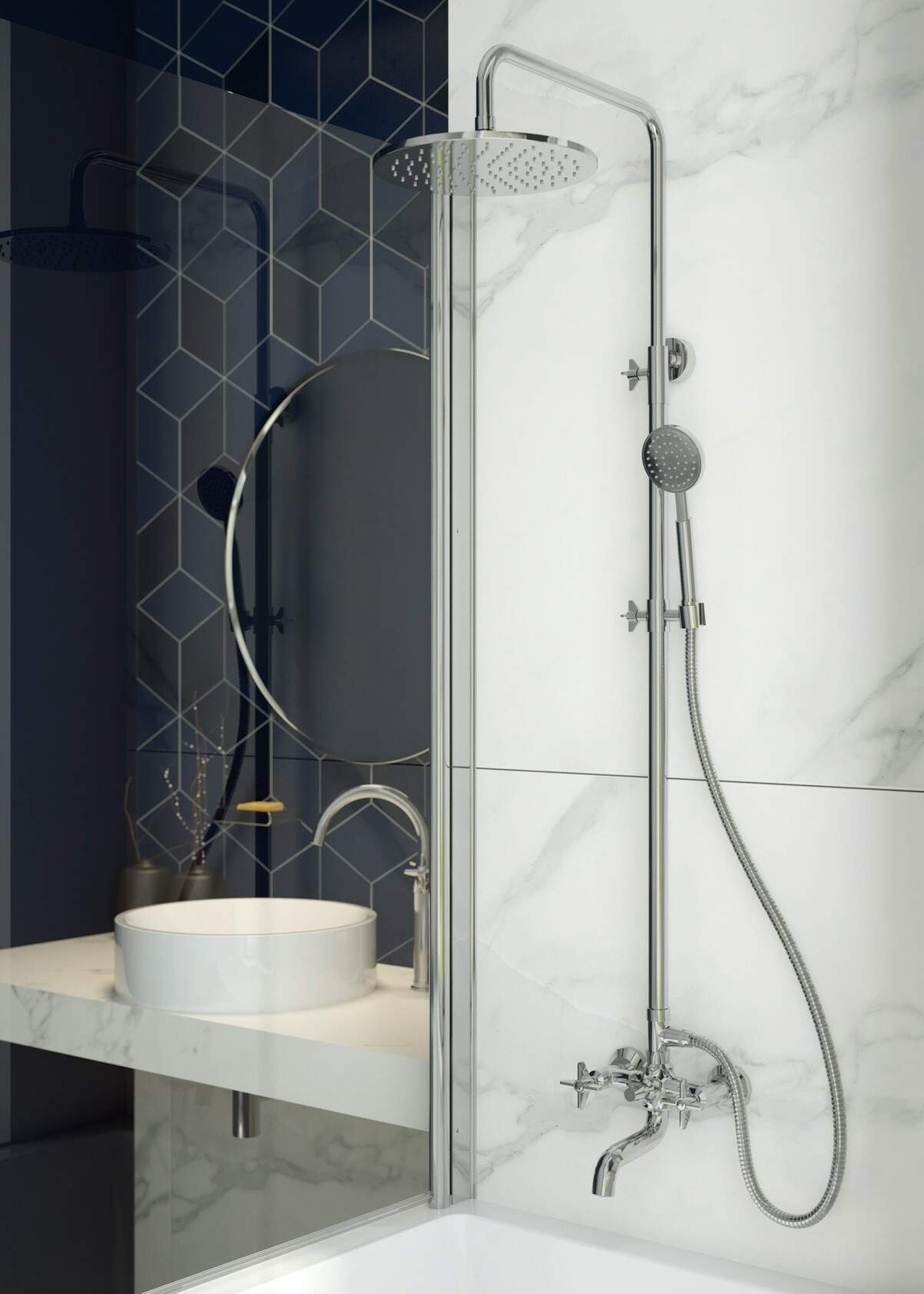 Deszczownica z baterią wannową stała chrom Temisto NAC 01QT