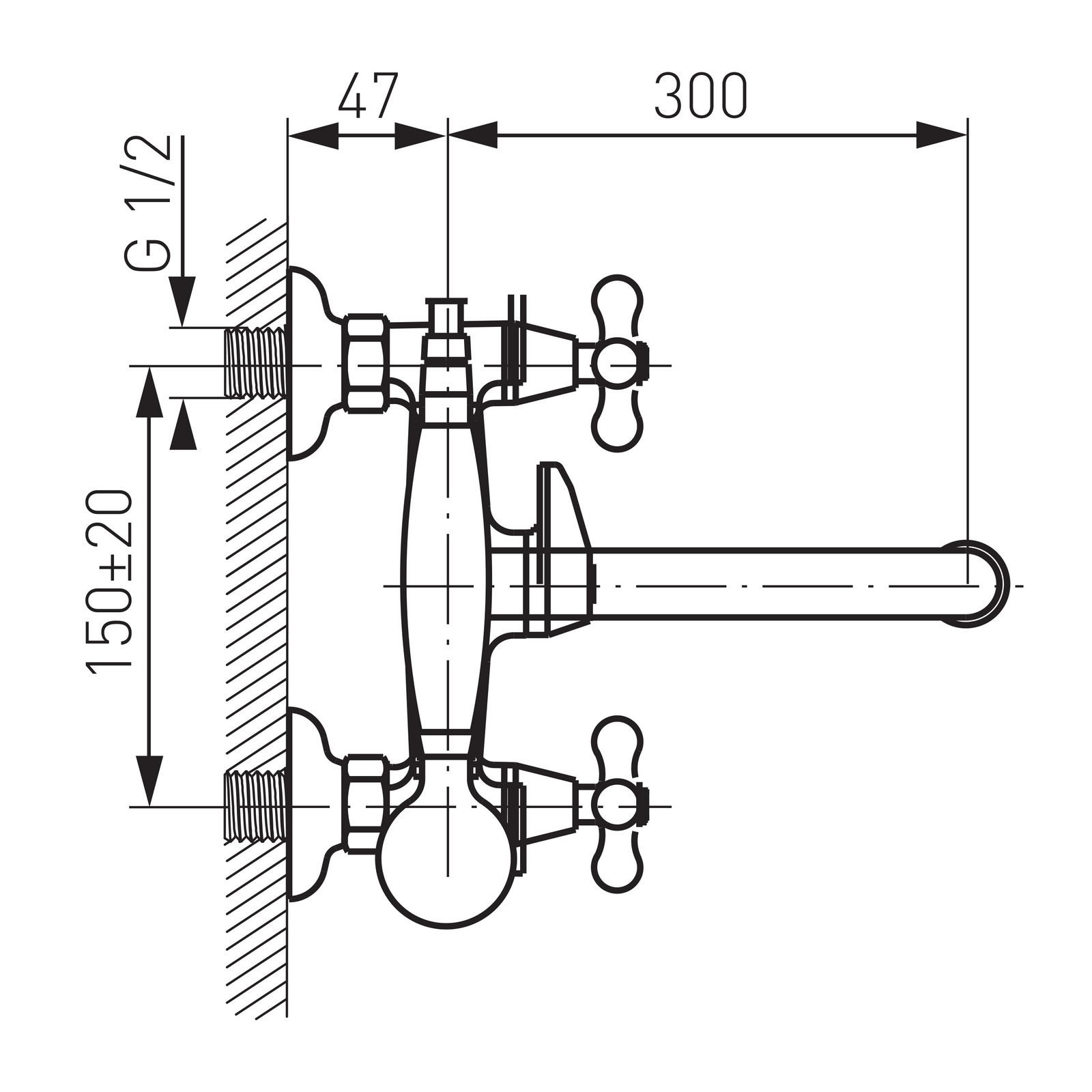 RETRO bateria wannowa z ruchomą wylewką, chrom