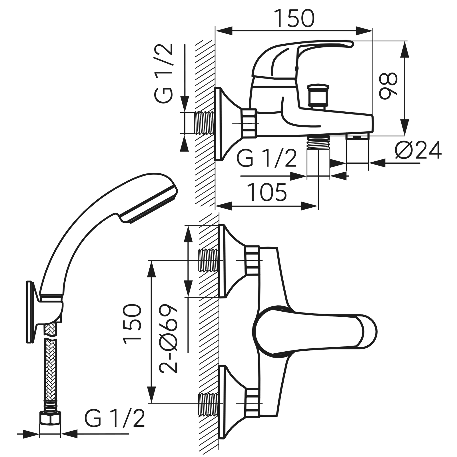 VASTO bateria wannowa z zestawem natryskowym, chrom