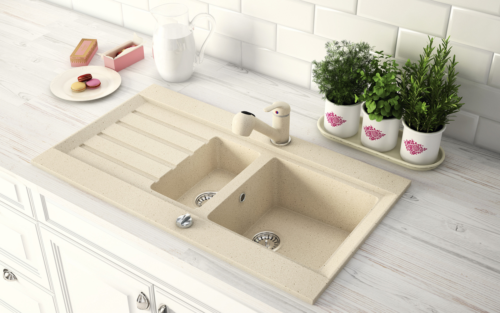 FREYA bateria zlewozmywakowa z wyciąganą wylewką, piasek