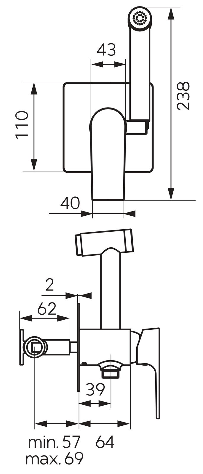 ALGEO SQUARE bateria bidetowa podtynkowa z zestawem natryskowym, chrom