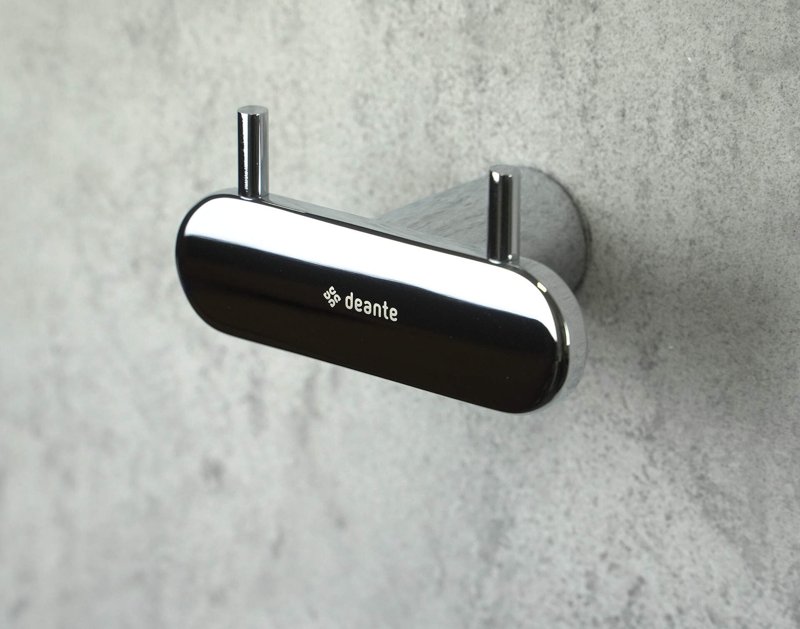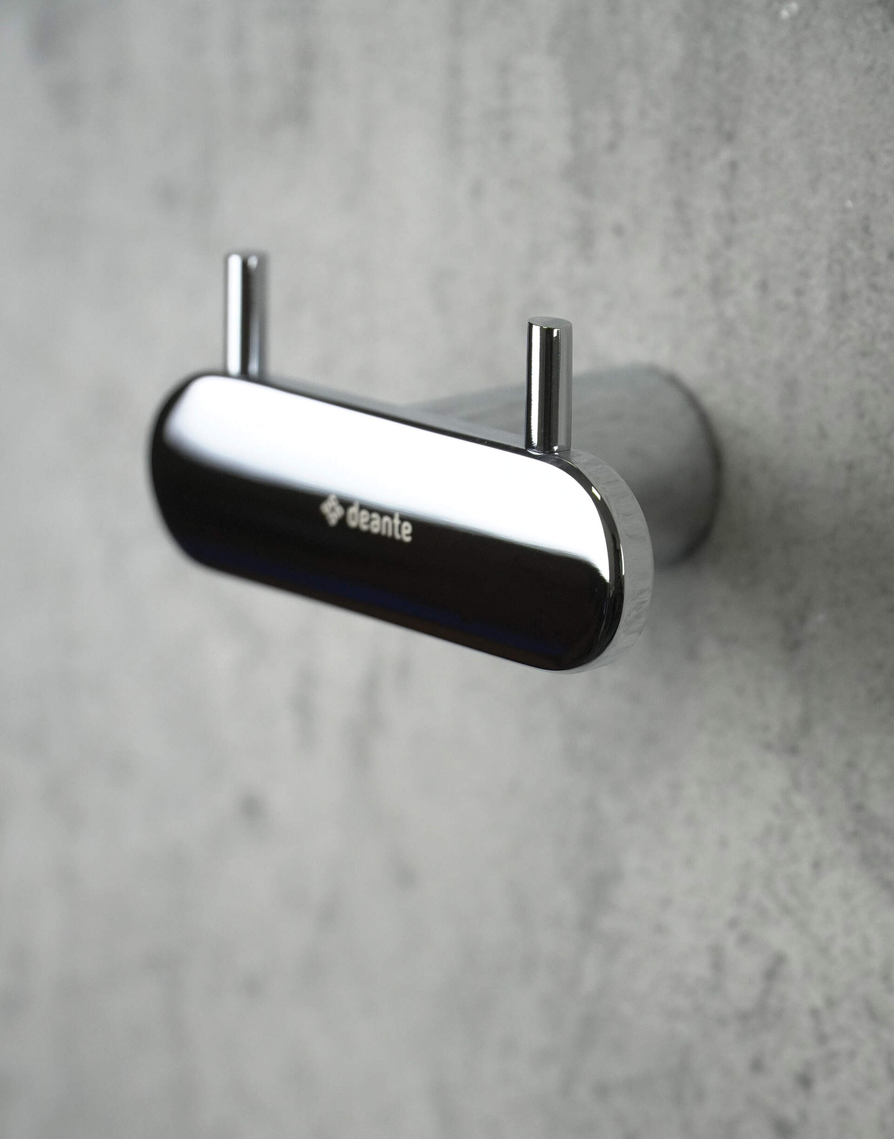 Minimalistyczny haczyk łazienkowy został pomyślany, aby łączyć interesujący design i wysoką funkcjonalność. Pasuje do każdego współczesnego lub tradycyjnego salonu kąpielowego. Świetnie komponuje się z jasną i ciemną glazurą, elementami drewnianymi, metalowymi i kamiennymi. Jest bardzo komfortowy w użyciu, można wieszać na nim bezproblemowo ręczniki i ubrania. Element posiada dwa uchwyty.