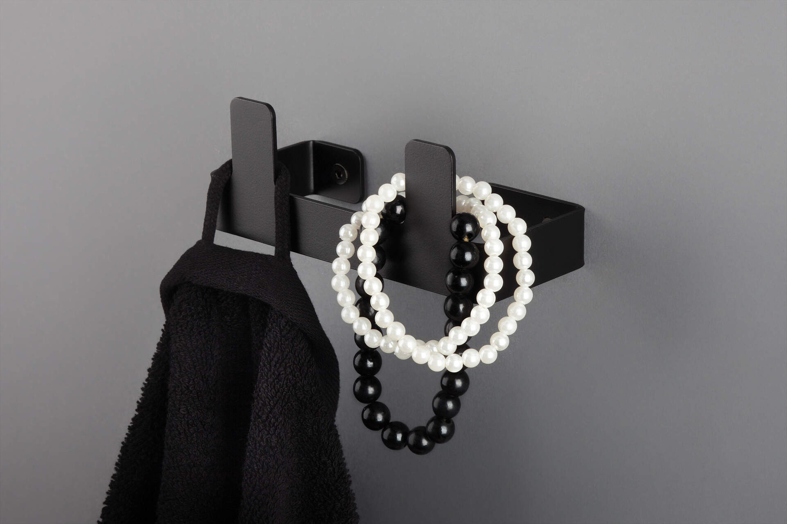 Minimalistyczny haczyk łazienkowy został pomyślany, aby łączyć interesujący design i wysoką funkcjonalność. Pasuje do każdego współczesnego lub tradycyjnego salonu kąpielowego. Świetnie komponuje się z jasną i ciemną glazurą, elementami drewnianymi, metalowymi i kamiennymi. Jest bardzo komfortowy w użyciu, można wieszać na nim bezproblemowo ręczniki i ubrania. Element posiada dwa uchwyty.