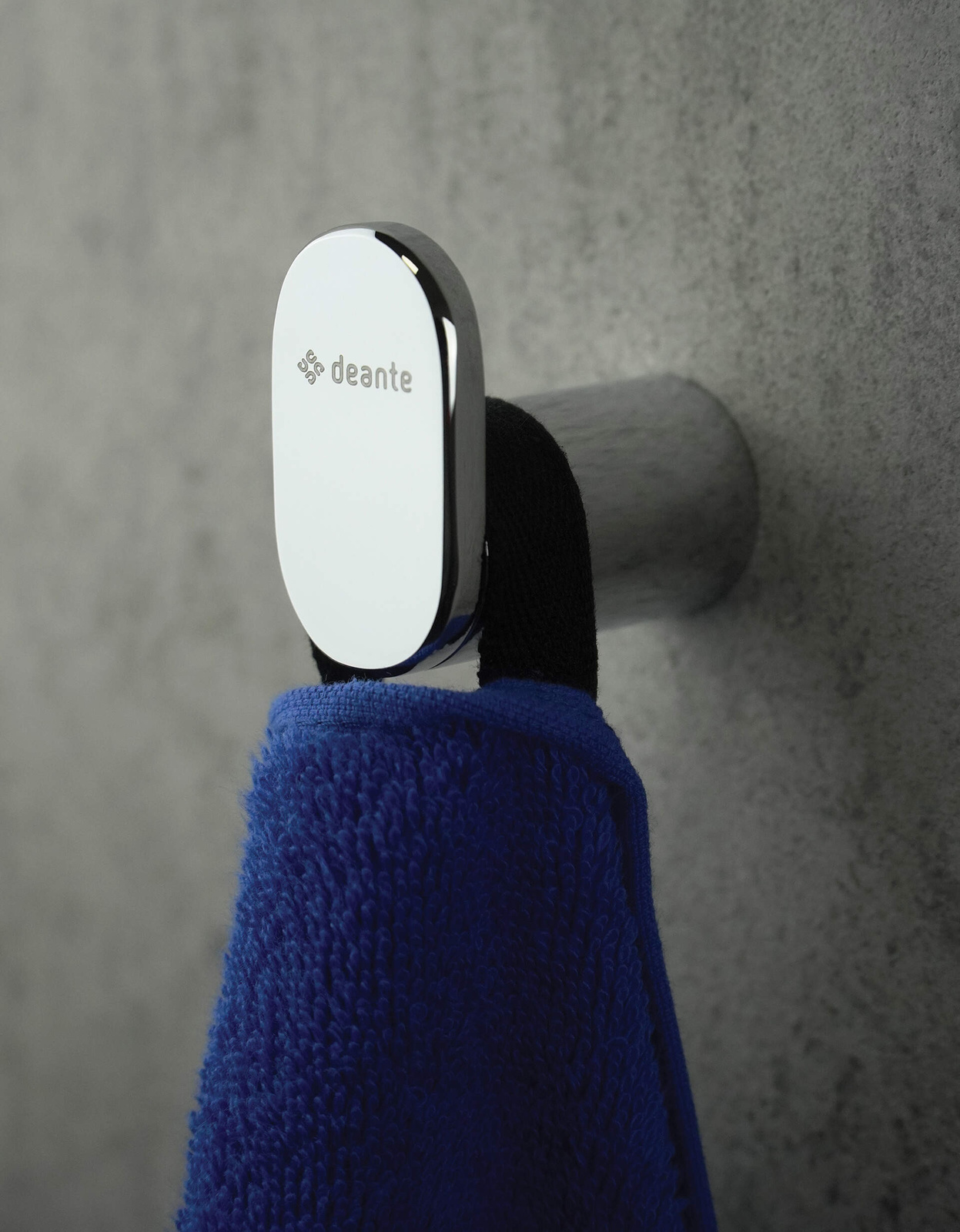 Minimalistyczny haczyk łazienkowy został pomyślany, aby łączyć interesujący design i wysoką funkcjonalność. Pasuje do każdego współczesnego lub tradycyjnego salonu kąpielowego. Świetnie komponuje się z jasną i ciemną glazurą, elementami drewnianymi, metalowymi i kamiennymi. Jest bardzo wygodny w użyciu, można wieszać na nim bezproblemowo ręczniki i ubrania. Element posiada jeden uchwyt.