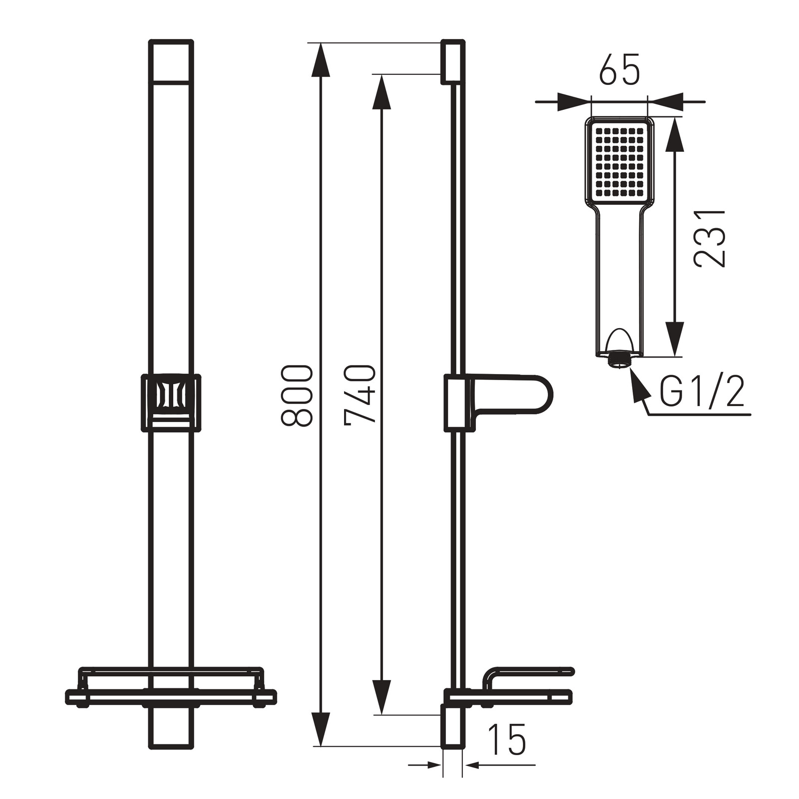 QUADRO LA zestaw natryskowy przesuwny, 1-funkcyjny, chrom