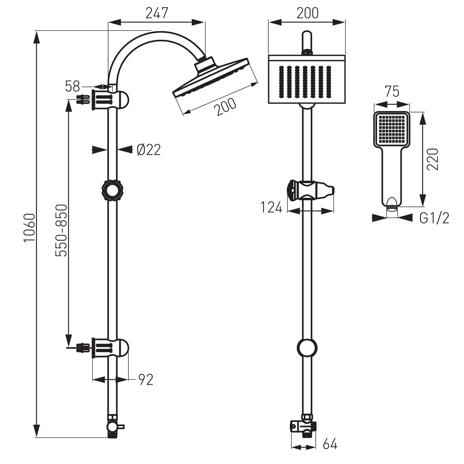 SQUERTO BLACK zestaw natryskowy z deszczownią, czarny