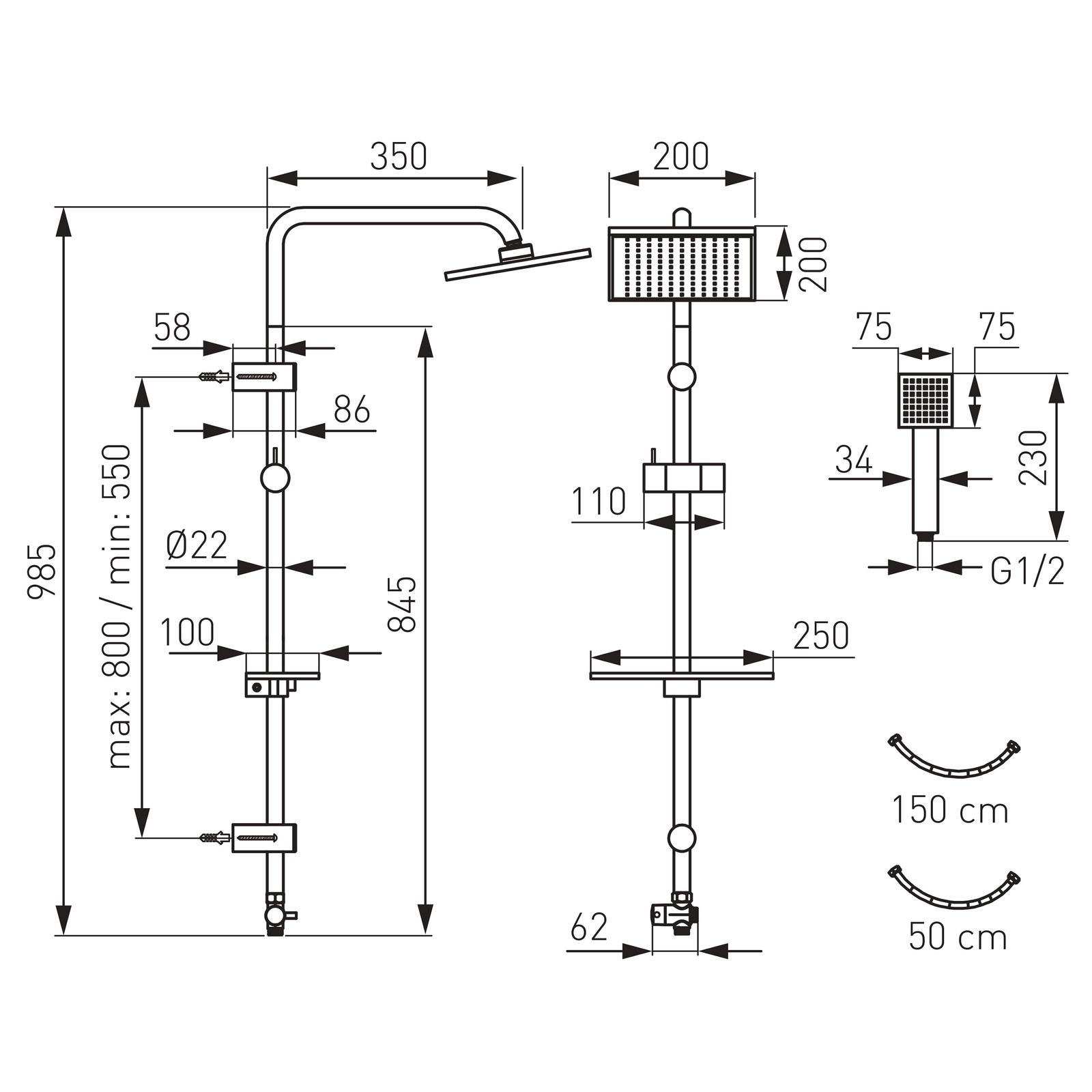 SQUERTO LUX zestaw natryskowy z deszczownią, chrom