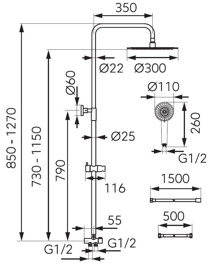 WIZARD PRO zestaw natryskowy z deszczownią, czarny