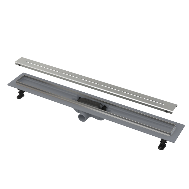 - Regulowane plastikowe nogi 0–35 mm umożliwiając szybką i wygodną instalację, w tym precyzyjne ustawienie spadu