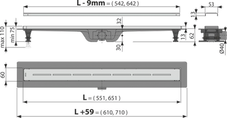 - Całkowita wysokość zabudowy: 75 - 110 mm