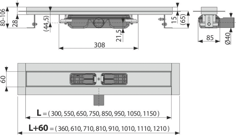 - Całkowita wysokość zabudowy: 80 - 106 mm