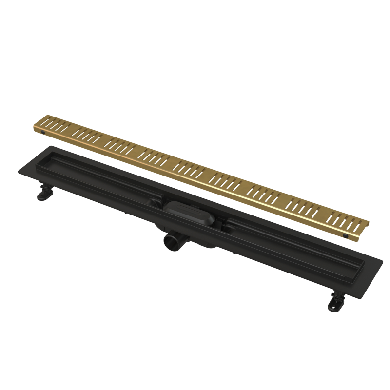 - Regulowane plastikowe nogi 0–35 mm umożliwiając szybką i wygodną instalację, w tym precyzyjne ustawienie spadu