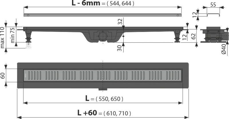 - Całkowita wysokość zabudowy: 75 - 110 mm