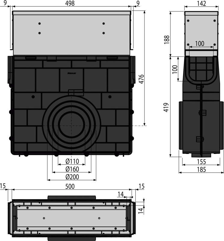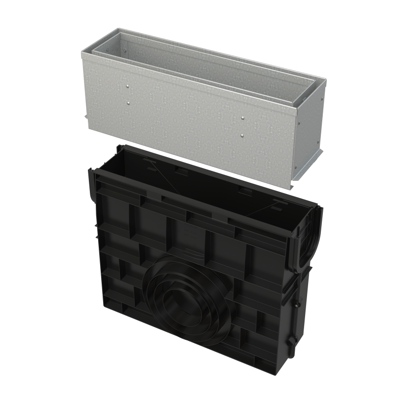 Odwodnienie zewnętrzne szczelinowe studzienka z rewizją do rusztu asymetrycznego 160 mm, stal ocynkowana