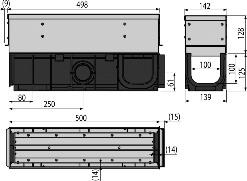 Odwodnienie zewnętrzne szczelinowe symetryczne z rewizją 100 mm, stal nierdzewna