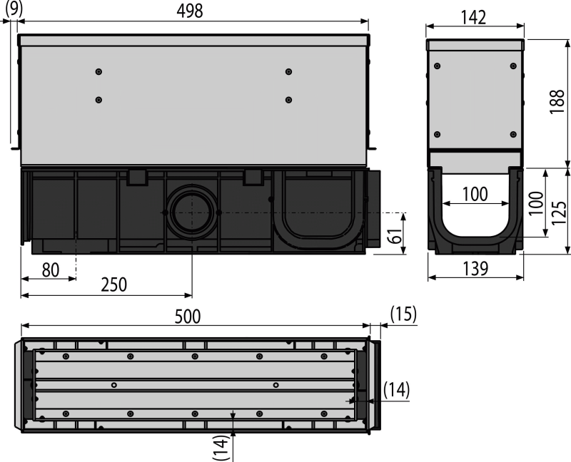 Odwodnienie zewnętrzne szczelinowe symetryczne z rewizją 160 mm, stal ocynkowana