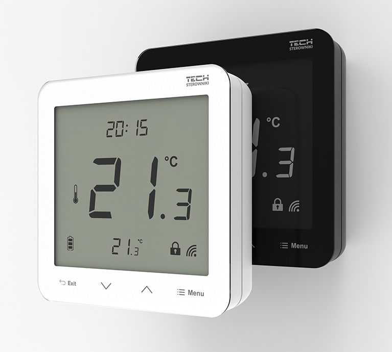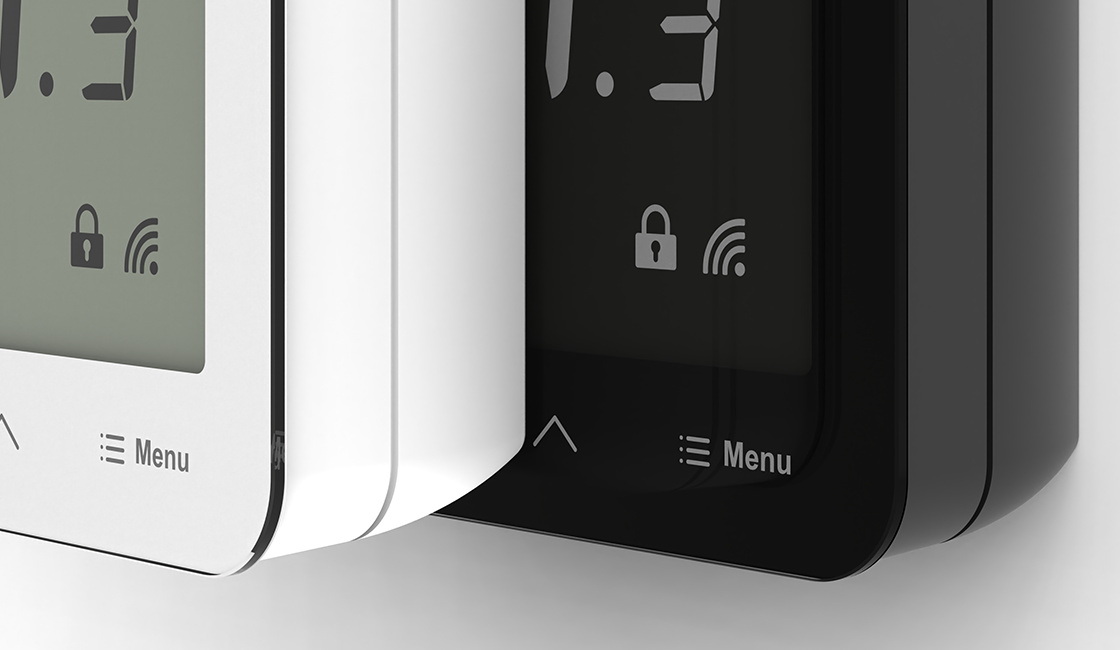 - Bezprzewodowy regulator pokojowy o szklanym froncie, czarny.