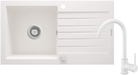 Zlewozmywak granitowy z baterią 1-komorowy z ociekaczem obrotowa alabaster alabaster Zorba ZQZVA113