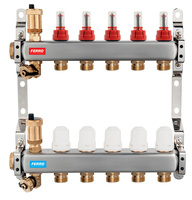 Rozdzielacz 12-drogowy z zaworami termostatycznymi i przepływomierzami, stal nierdzewna