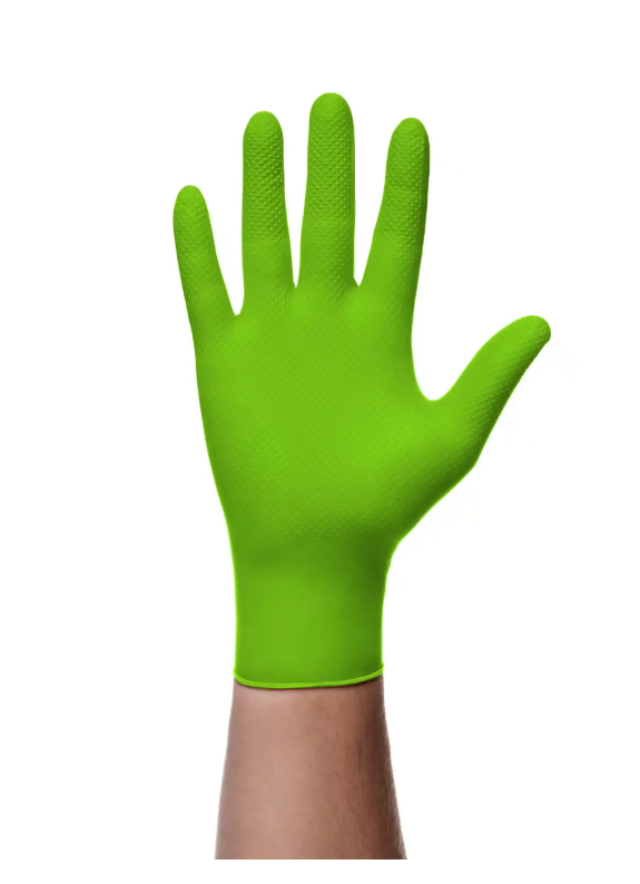 - MERCATOR GOGRIP GREEN Mocne grube rękawiczki nitrylowe L zielone 50 sztuk z innowacyjną diamentową teksturą 3D