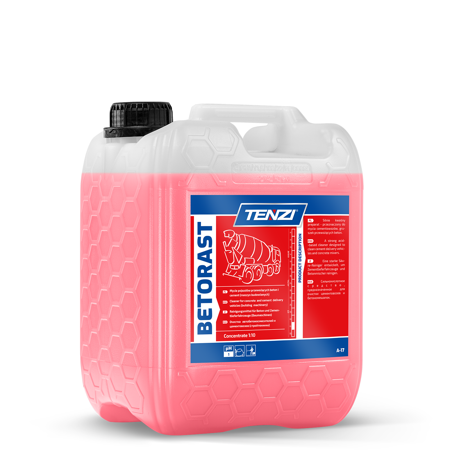 Wyjątkowo skuteczny koncentrat do czyszczenia powierzchni odpornych na kwasy, w tym betoniarek i innych specjalistycznych urządzeń budowlanych. Łatwo rozpuszcza brud, w tym rdzę, beton, nacieki pochodzenia cementowego. Szybko reaguje, nie powoduje korozji. Nie stosować na powierzchnie emaliowane. Stosować w rozcieńczeniu.