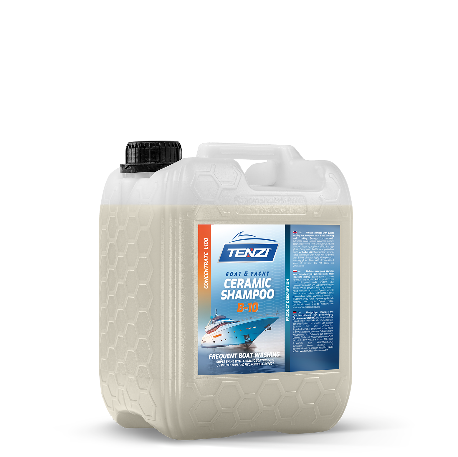 Boat Ceramic Shampoo to unikalny szampon z powłoką kwarcową do mycia łodzi. Środek jest dostępny w postaci koncentratu. Posiada zaawansowaną nano formułę, która wzmacnia kolor i chroni powierzchnię łodzi przed promieniowaniem UV, wnikaniem wody, brudu i soli. Charakterystyczną cechą szamponu jest jego wysoka hydrofobowość, która powstaje podczas mycia. Każde kolejne mycie tworzy nową warstwę ochronną.