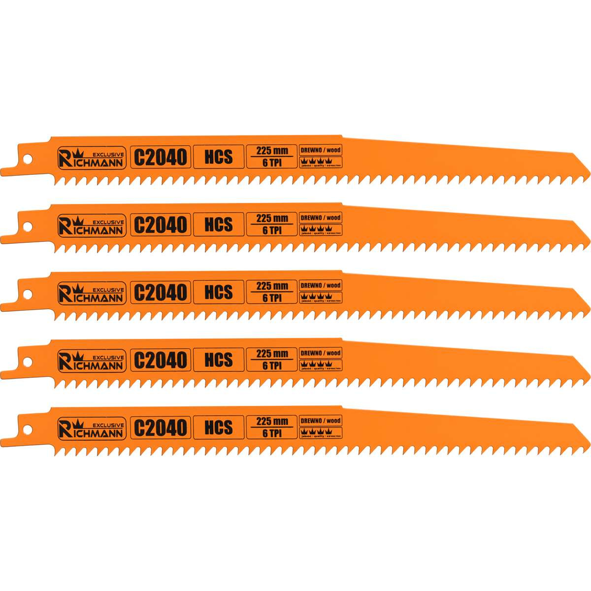 Zestaw 5 szt. brzeszczotów HCS o długości 225 mm przeznaczonych do pił szablastych.