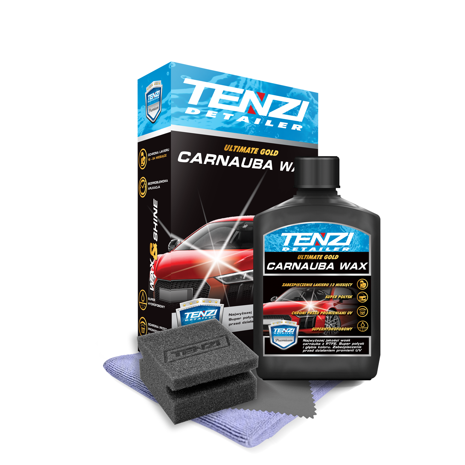 Wysokiej jakości wosk samochodowy zabezpieczający karoserię. Jego formuła jest oparta na naturalnym wosku Carnauba z dodatkiem PTFE. Zapewnia długotrwałe zabezpieczenie i dodatkowe nabłyszczenie lakieru nawet do 12 miesięcy. Wosk ten skutecznie pokrywa pory i mikrorysy. Nadaje karoserii bardzo wysoką odporność na czynniki atmosferyczne i promieniowanie UV. Tworzy także hydrofobową powłokę na karoserii, pogłębiając dodatkowo jej barwę i nadając efektowny połysk. Zestaw zawiera: produkt Carnauba Wax (300 ml), aplikator, szmatkę z mikrofibry oraz małą szmatkę.