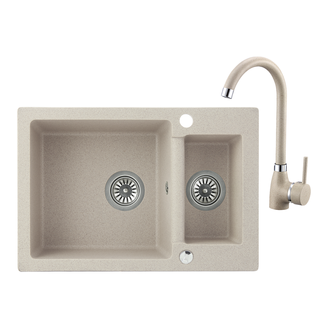 Celia - zlewozmywak 1,5-komorowy z baterią granitową z wylewką U