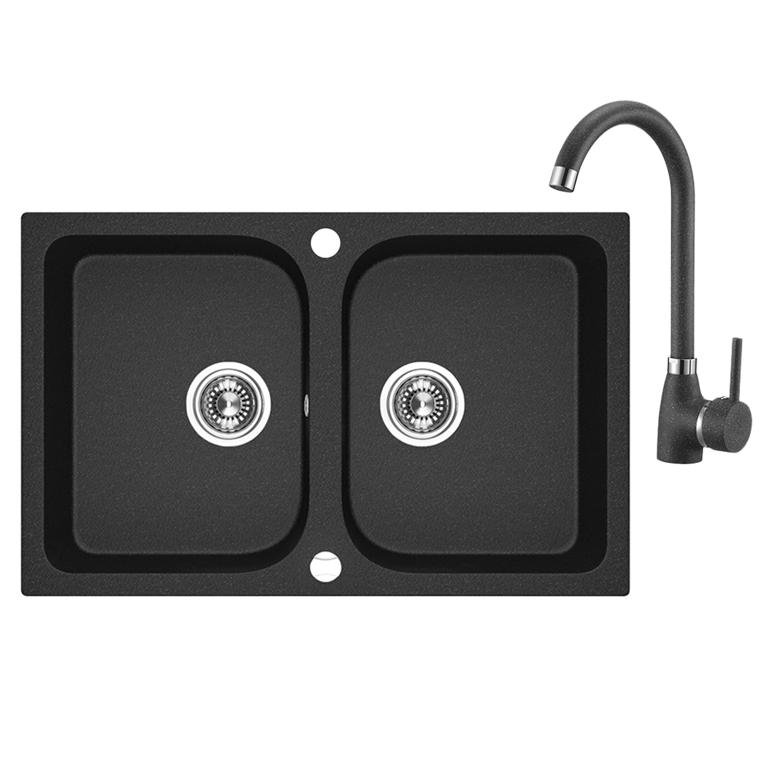 Celia - zlewozmywak 2-komorowy z baterią granitową z wylewką U