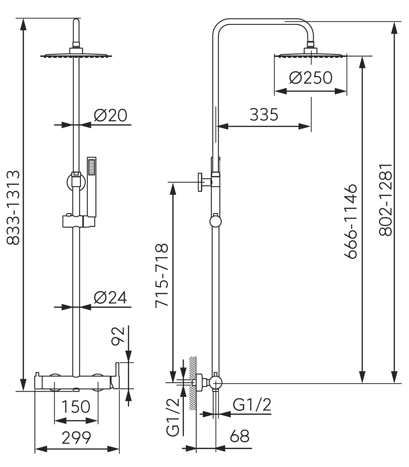 •Wysokość drążka deszczowni [mm]: 802-1146