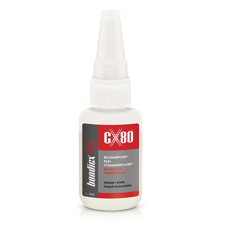- CX80 Bondicx 96 to klej cyjanoakrylowy o bardzo niskiej lepkości, idealny do klejenia małych powierzchni, szczególnie metali takich jak stal, aluminium czy stal śrutowa.