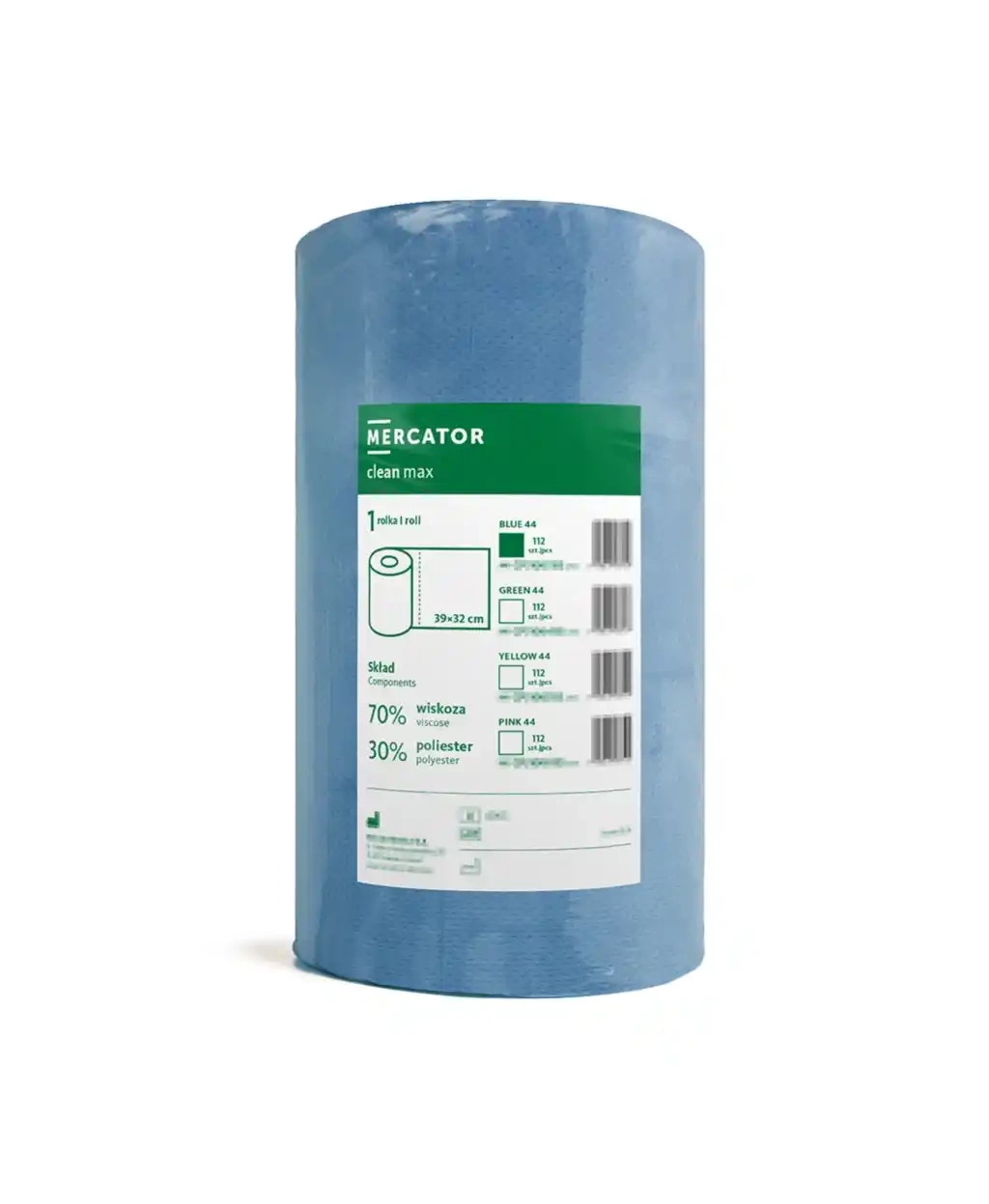 MERACTOR clean max blue 44, to czyściwo przemysłowe na rolce. Wykonane z włókniny wiskozowo-poliestrowej, w kolorze białym. Długość rolki 44 m.b.