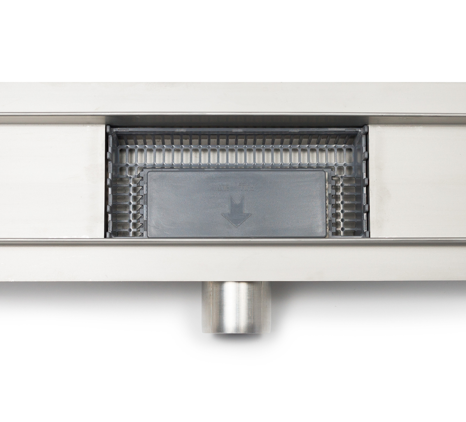 - Syfon: Ø40(przepustowość do 55 l/min) wyposażony w osadnik typu koszowego, zatrzymujący nieczystości. Osadnik łatwo czyszczony od góry.