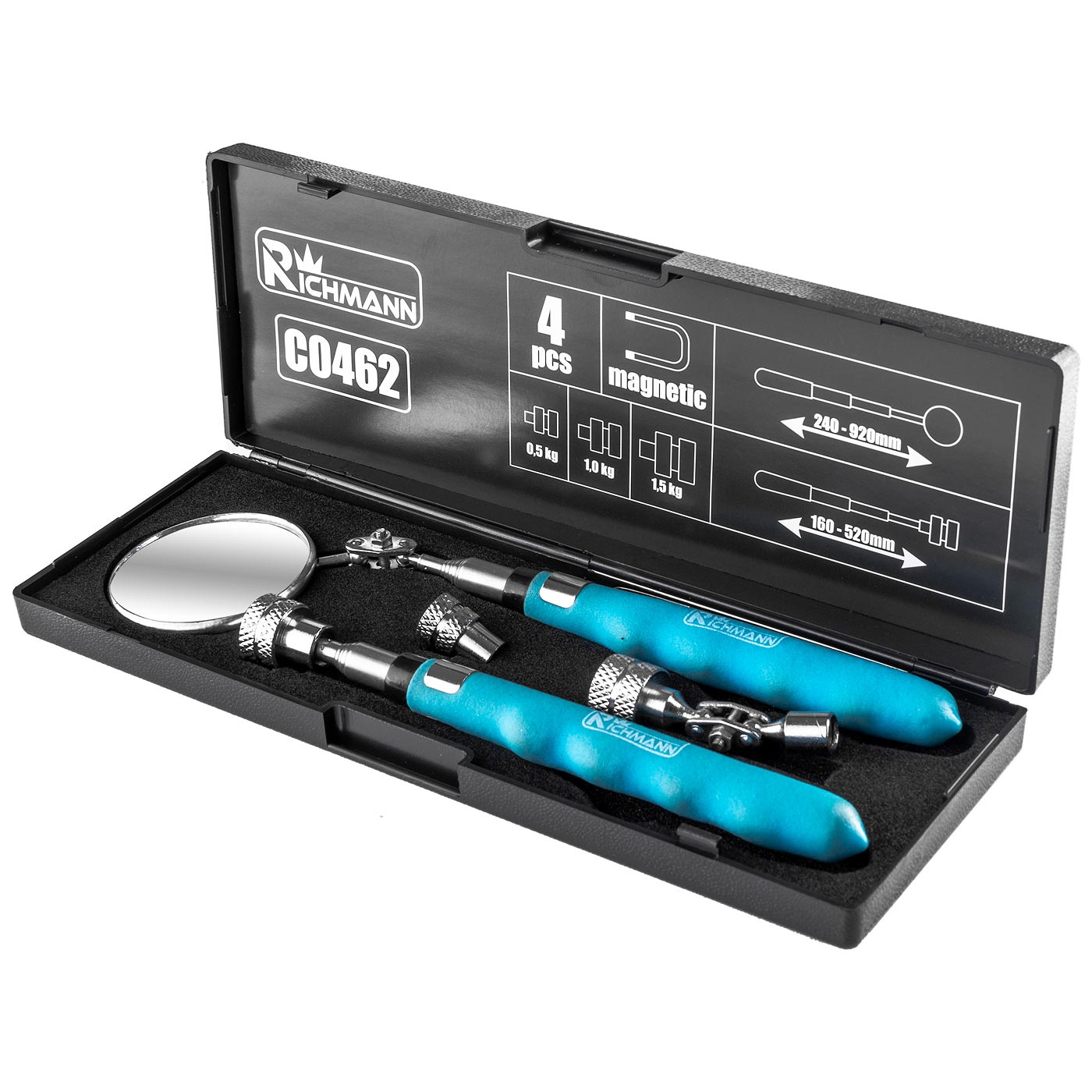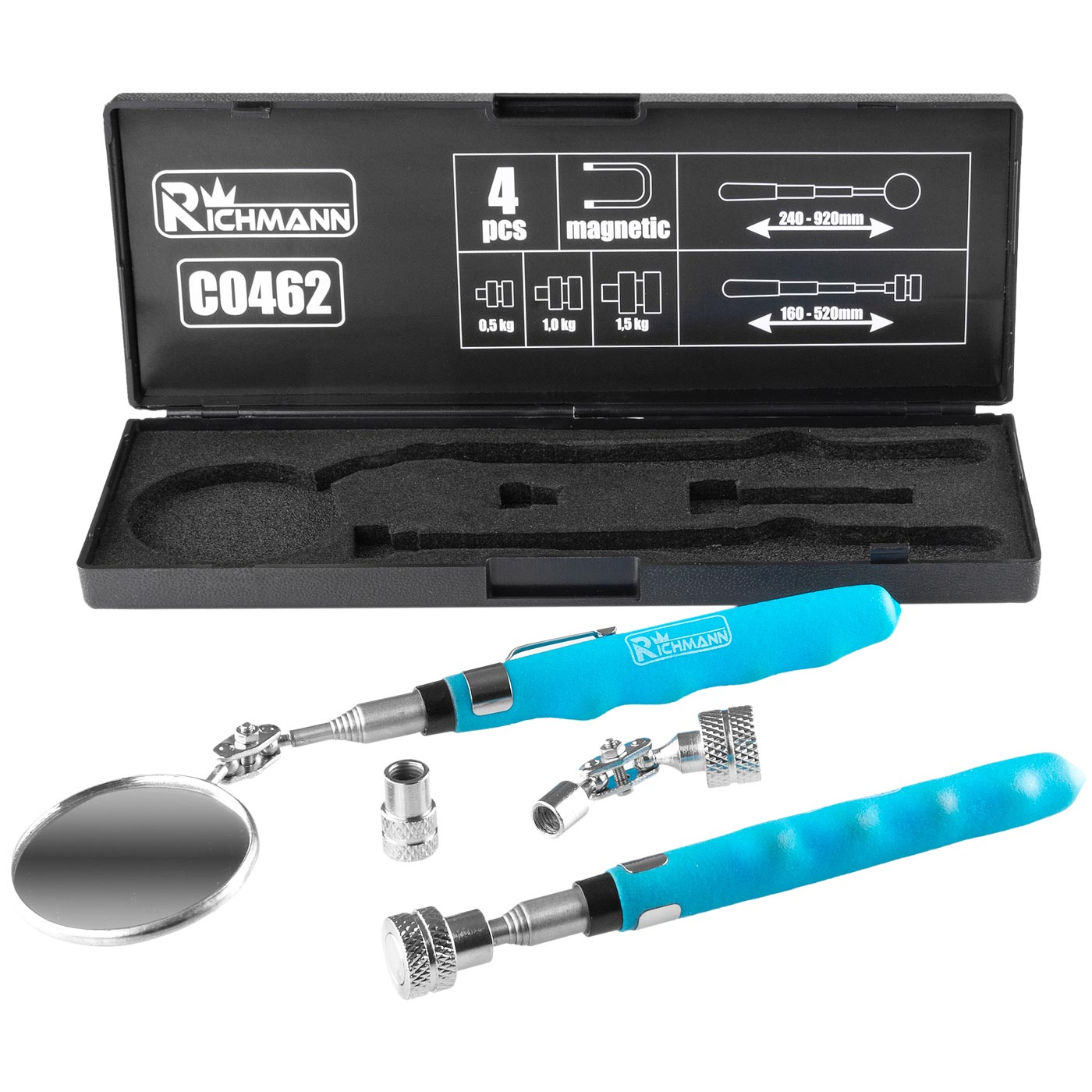 W zestawie znajduje się również teleskopowy chwytak magnetyczny z wymiennymi końcówkami.