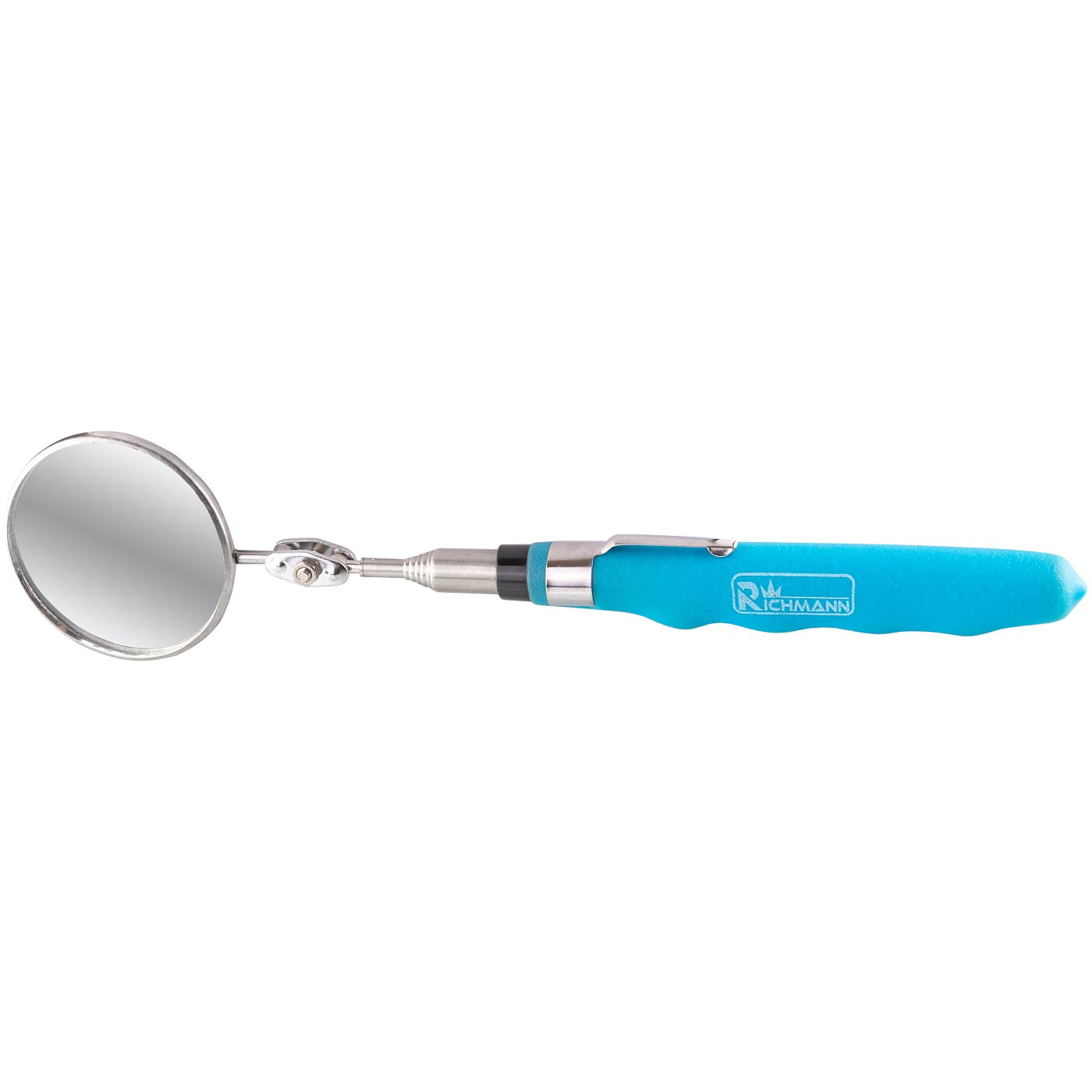 Lusterko oraz chwytak posiadają ergonomiczną antypoślizgową rączkę z klipsem.