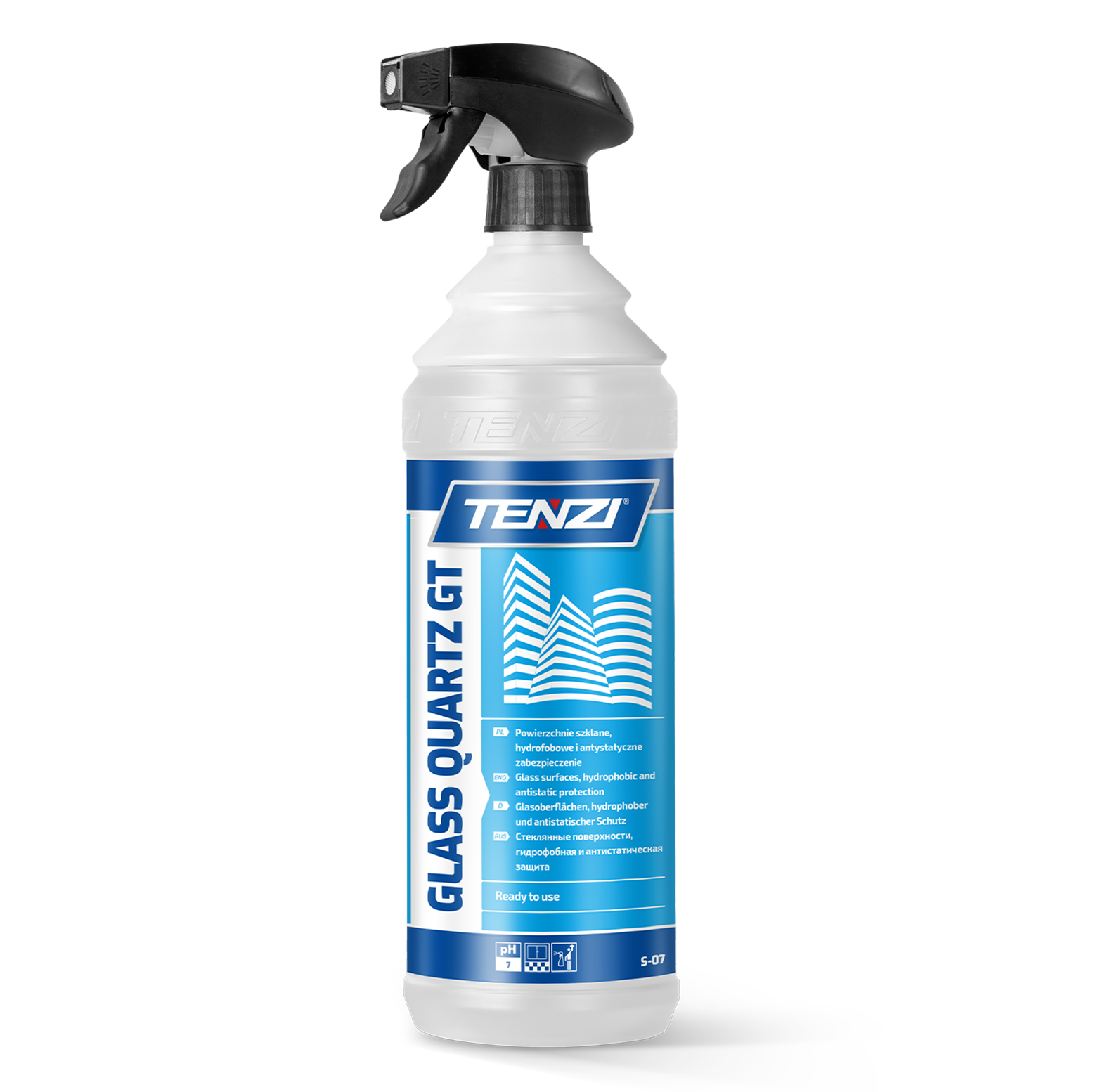 Płyn do mycia, pielęgnacji i zabezpieczania powierzchni szklanych. O szerokim zastosowaniu - idealny do mucia szyb, lustr, ścianek działowych, przeszkleń, witryn sklepowych, kabin prysznicowych. Pozostawia hydrofobowy film - efekt perlenia, który znacznie spowalnia ponowne osadzanie się brudu. Doskonale usuwa brud bieżący, zarówno organiczny, jak i mineralny (eksploatacyjny). Przyjazny dla środowiska, łatwy do użycia.