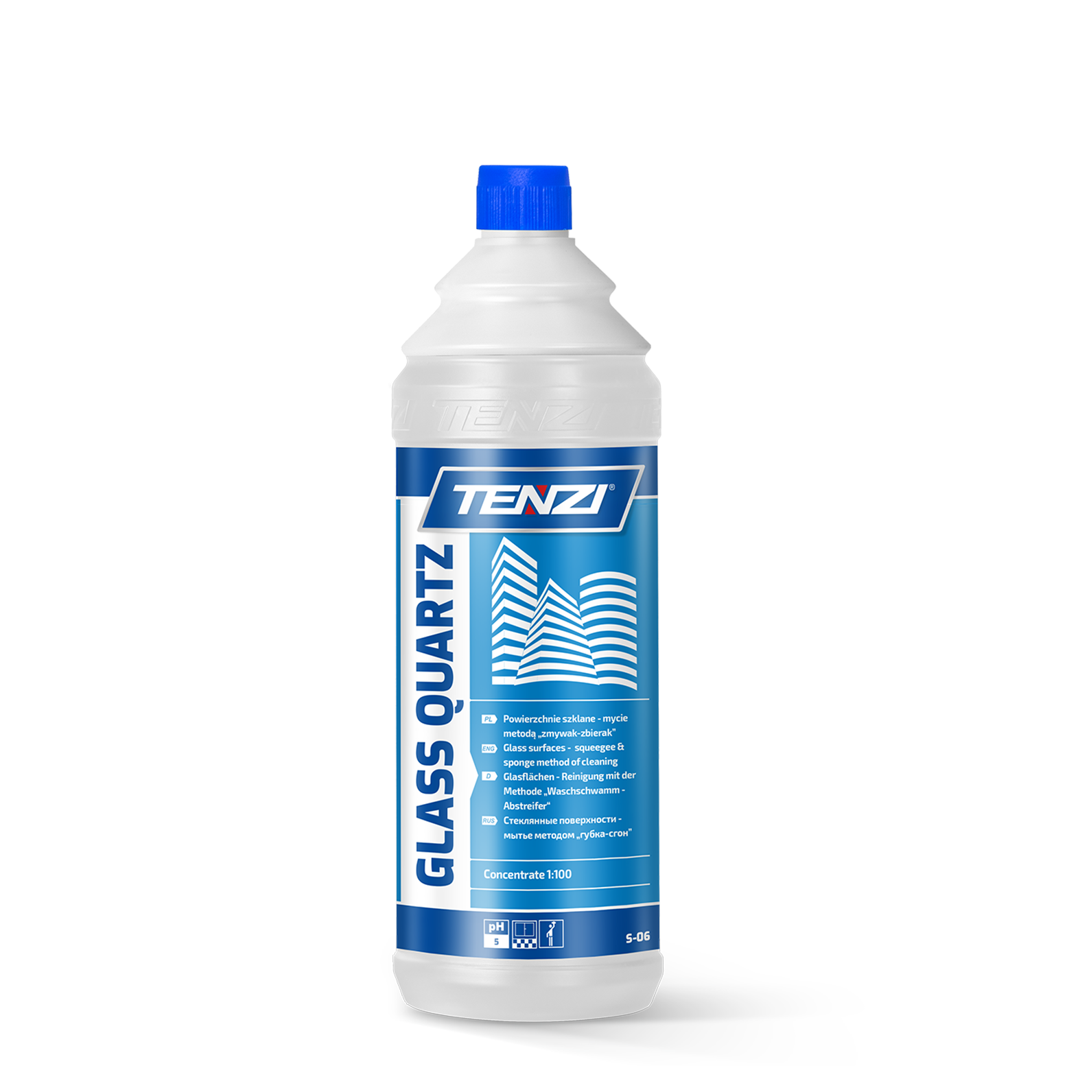 Wydajny, neutralny koncentrat do mycia powierzchni szklanych, zarówno na zewnątrz, jak i wewnątrz obiektu. Efektywnie czyści szyby, lustra, przeszklenia, witryny sklepowe, ścianki działowe. Pozostawia zabezpieczający film hydrofobowy - efekt perlenia. Z łatwością usuwa brud eksploatacyjny oraz atmosferyczny, w tym kurz, ślady po owadach, nacieki wodne. Produkt zalecany do metody zmywak – zbierak. Przyjazny dla środowiska. Ułatwia utrzymanie czystości powierzchni szklanych każdego rodzaju.