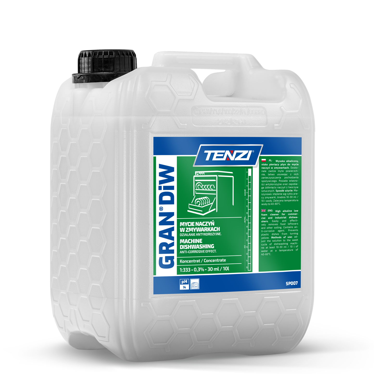 Skoncentrowany, niskopieniący płyn do mycia naczyń w zmywarkach. Zalecany do naczyń szklanych, ceramicznych i aluminiowych. Dzięki obecności wypełniaczy aktywnych doskonale zwilża myte powierzchnie, łatwo usuwając z nich zanieczyszczenia pochodzenia spożywczego, a przy tym posiada działanie antykorozyjne zapobiegające niszczeniu mytych naczyń. Ponadto zapobiega żółknięciu naczyń z tworzyw sztucznych. Bezzapachowy.