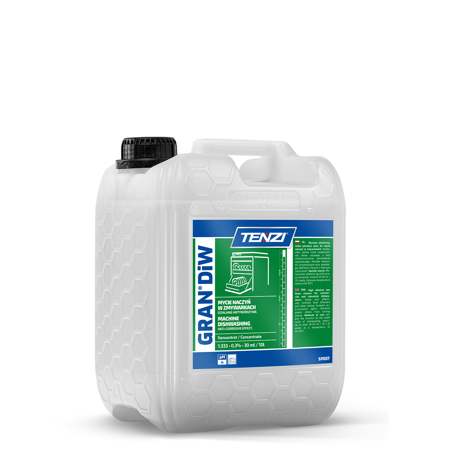 Skoncentrowany, niskopieniący płyn do mycia naczyń w zmywarkach. Zalecany do naczyń szklanych, ceramicznych i aluminiowych. Dzięki obecności wypełniaczy aktywnych doskonale zwilża myte powierzchnie, łatwo usuwając z nich zanieczyszczenia pochodzenia spożywczego, a przy tym posiada działanie antykorozyjne zapobiegające niszczeniu mytych naczyń. Ponadto zapobiega żółknięciu naczyń z tworzyw sztucznych. Bezzapachowy.