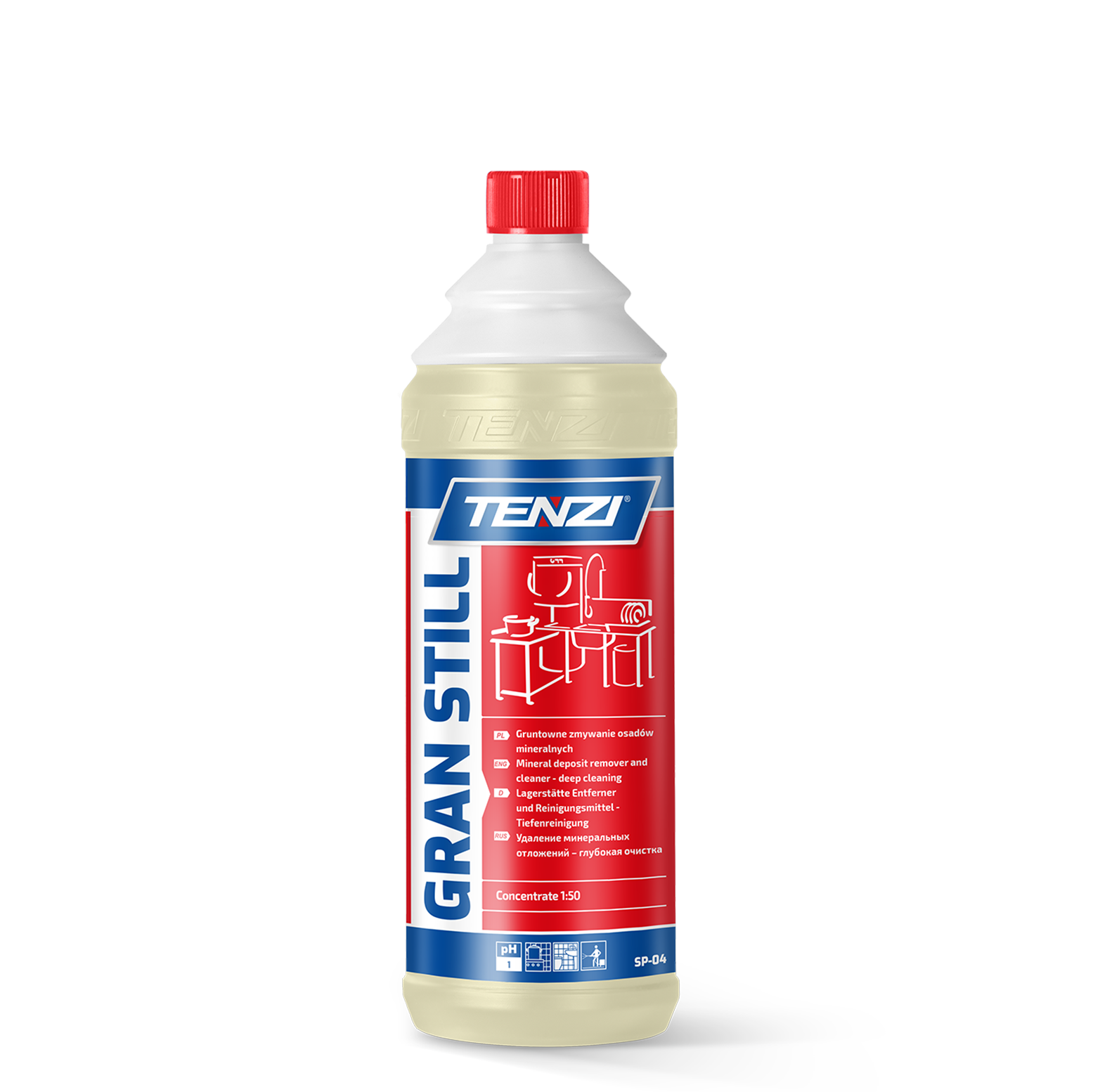 Kwaśny koncentrat myjący na bazie kwasu fosforowego. Efektywnie usuwa osady nieorganiczne: kamień, nacieki z rdzy, uciążliwy brud. Zalecany do gruntownego mycia powierzchni ze stali nierdzewnej. Zawiera inhibitory korozji. Nadaje połysk mytym powierzchniom. Toleruje twardą wodę. Produkt o neutralnym zapachu.