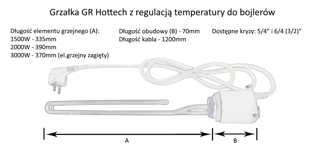 - Grzałki GR i GR-B z regulacją do bojlerów - regulacja temperatury wody (termostat mechaniczny) aukcja dotyczy GR 2,0kW 5/4" 2000W (GR20-54)