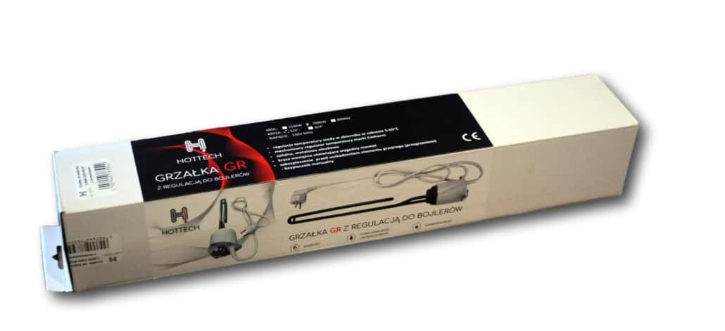 Grzałka posiada solidną obudowę z materiału ABS, niezawodny mechaniczny termostat oraz mosiężną kryzę do łatwego montażu w zbiorniku. Grzałka posiada płynną regulację temperatury wody w zakresie 15-65°C (+-5°C). Jako zabezpieczenie przed uszkodzeniem (przegrzaniem) zastosowano bezpiecznik manualny (powtarzalny), który w razie konieczności można zresetować samodzielnie (zobacz film jak zrobić reset grzałki).