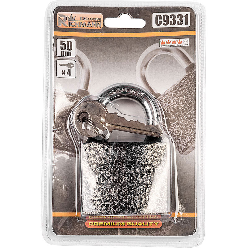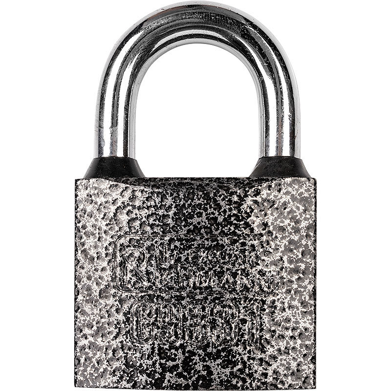 Wykonana ze stali czarna kłódka zatrzaskowa z uszczelkami.