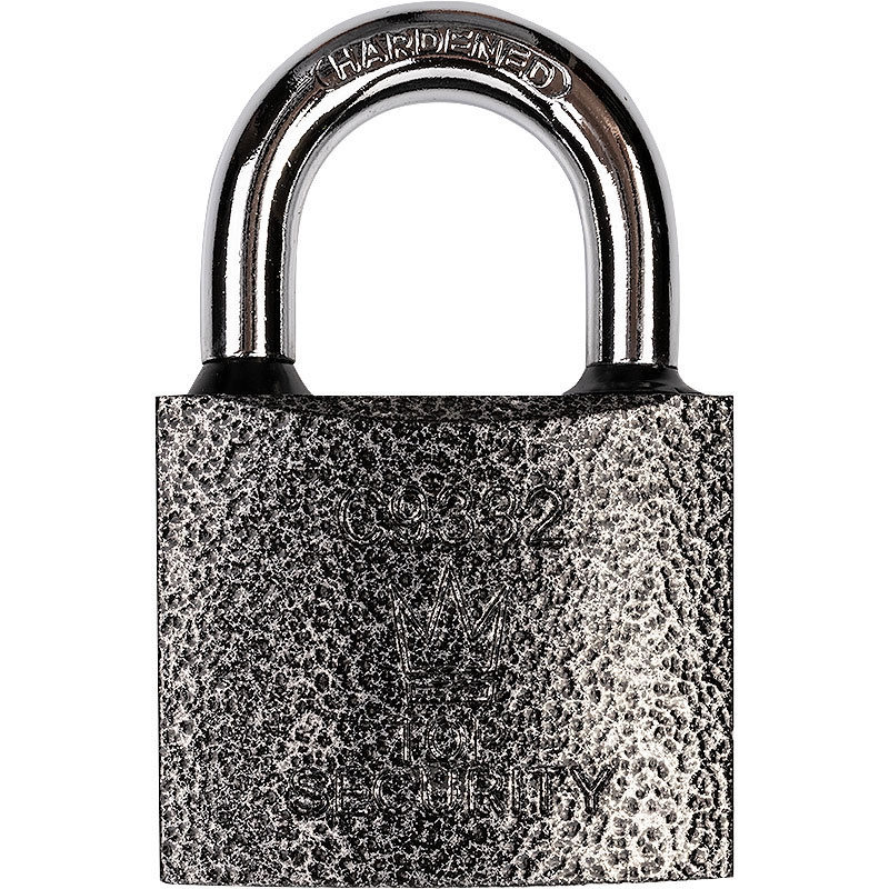 Wykonana ze stali czarna kłódka zatrzaskowa z uszczelkami.